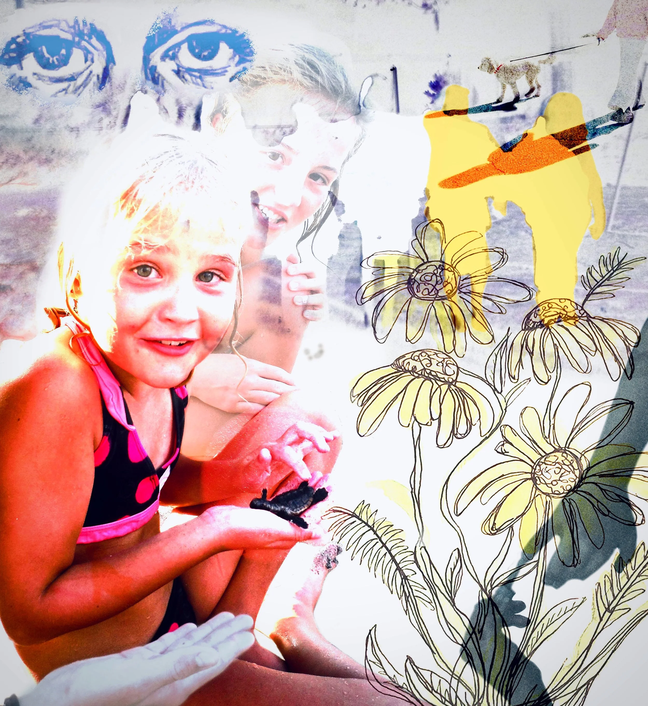 Looking Back, Photoshop, found photographs, scanned sketches, 2024